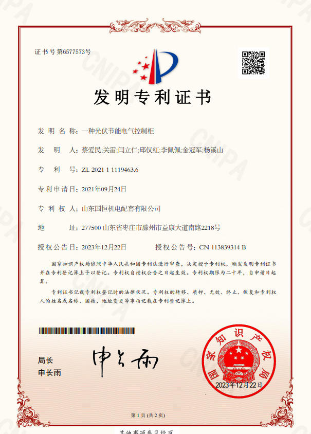 山東國恒機電配套有限公司簡 介 山東國恒機電配套有限公司是一家集新能源、高科技、智能化生產(chǎn)研發(fā)、制造、銷售為一體的綜合性現(xiàn)代化高新技術(shù)企業(yè),公司座落在魯班故里、墨子之鄉(xiāng)滕州,公司始建于2005年,注冊資本1億元,擁有各類中、高級專業(yè)技術(shù)人員100余名。主營業(yè)務涉及高科技智能電力裝備、新能源儲備輸送,220kv及以下輸變電工程勘察設計、制造、銷售、安裝、售電和智能充電樁能效運維,并從事生產(chǎn)制造交直流充電樁設備、成套開關(guān)設備、各型號高低壓開關(guān)柜、箱式變電站等電氣設備,是棗莊地區(qū)唯一一家國資入股的新能源高端品牌企業(yè)。公司擁有獨立…